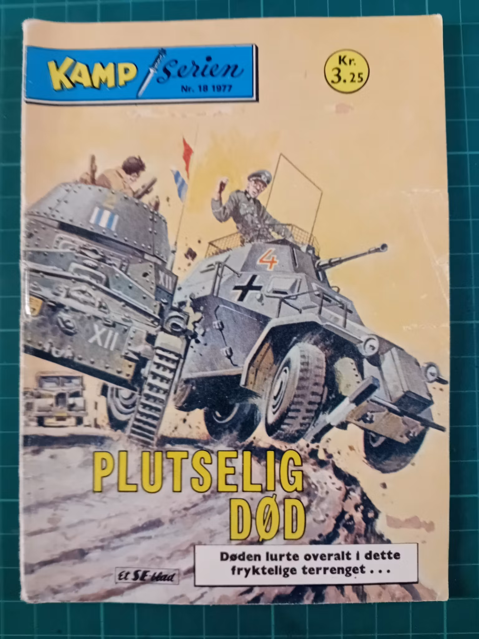 Kamp serien 1977 - 18 12,- Ikke på lager hos Dippy Artikkelnummer: 68510 Del Informasjon Tilbakemeldinger FormatSmå formatGraderingNoe slitasjeMerknaderBøy i rygg, ett par rifter i cover