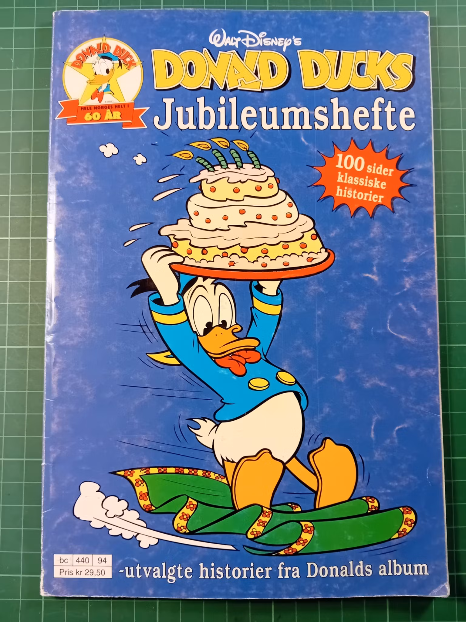Donald Ducks jubileumshefte 60 år 15,- På lager Legg i handlekurv Lagerbalanse: 1 Artikkelnummer: 51587 Del Informasjon Tilbakemeldinger FormatAlbum i seriebladformatSlitasjeNoe slitasjeMerknaderEn del smuss på cover