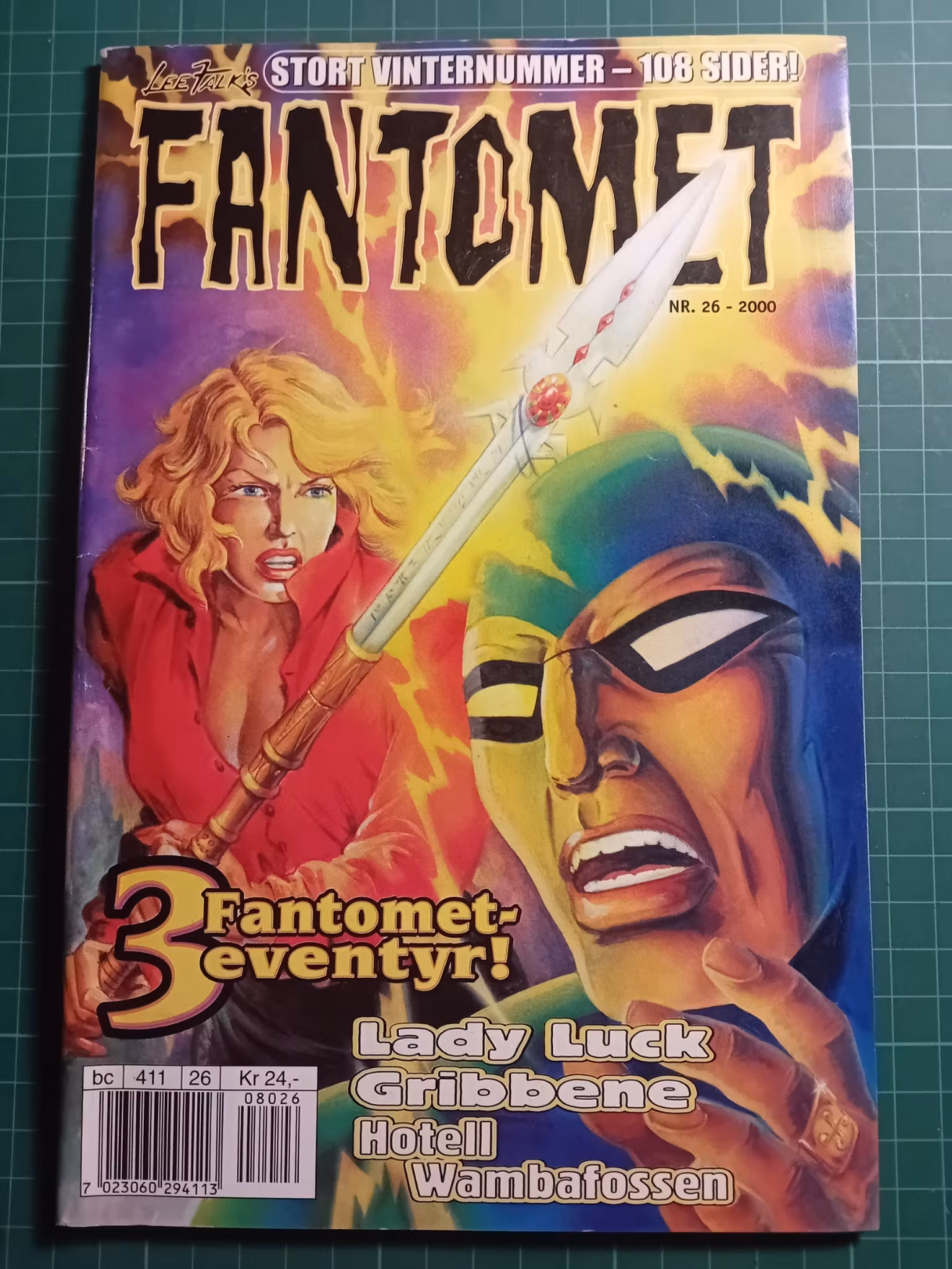 Fantomet 2000 - 26 15,- På lager Legg i handlekurv Lagerbalanse: 1 Artikkelnummer: 52967 Del Informasjon Tilbakemeldinger FormatSeriebladGraderingnoe slitasjeMerknaderhjørnebrett