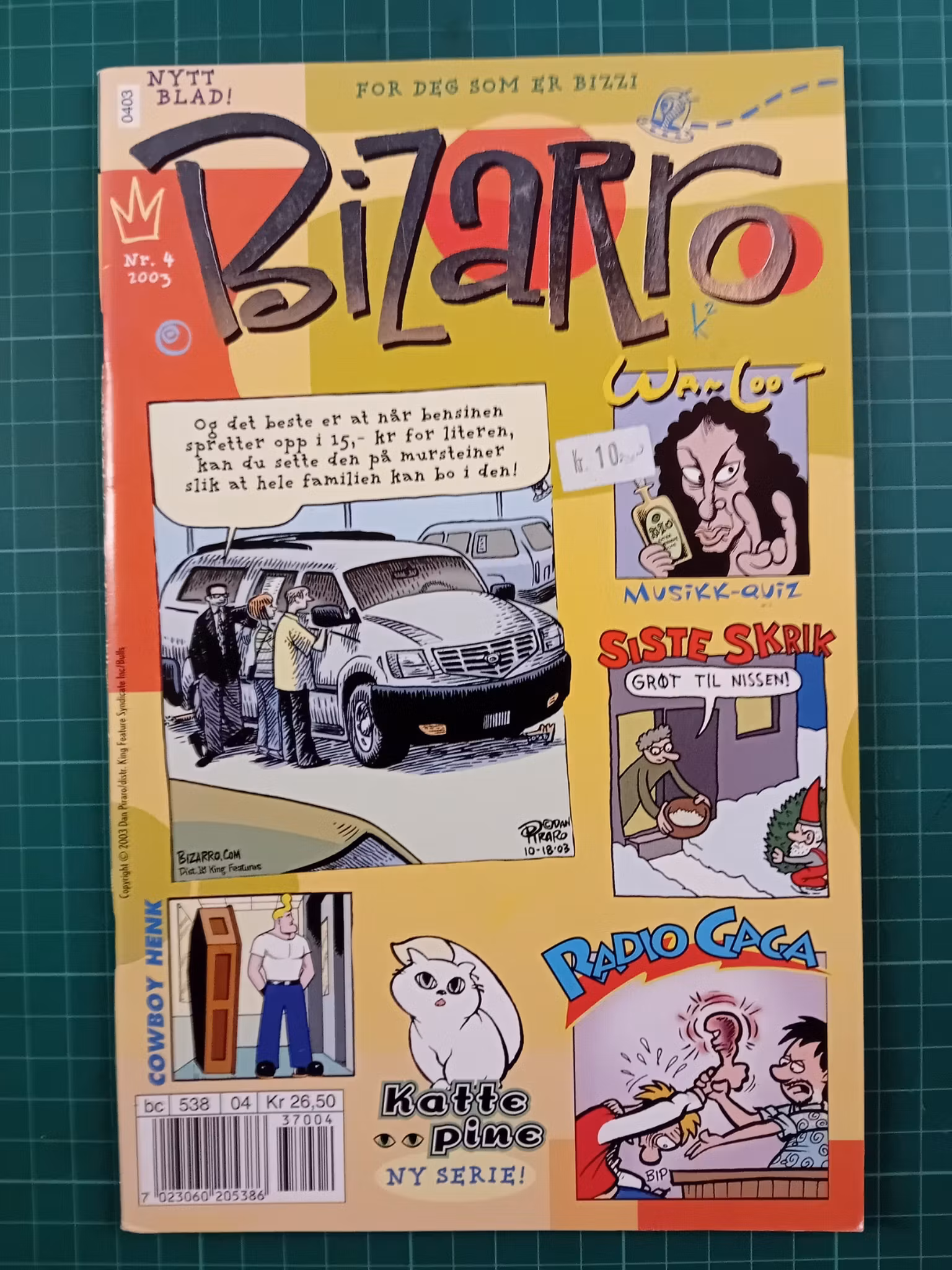 Bizarro 2003 - 04 15,- På lager Legg i handlekurv Lagerbalanse: 1 Artikkelnummer: 76868 Del Informasjon Tilbakemeldinger FormatSeriebladGraderingNoe slitasjeMerknaderPrislapp på cover