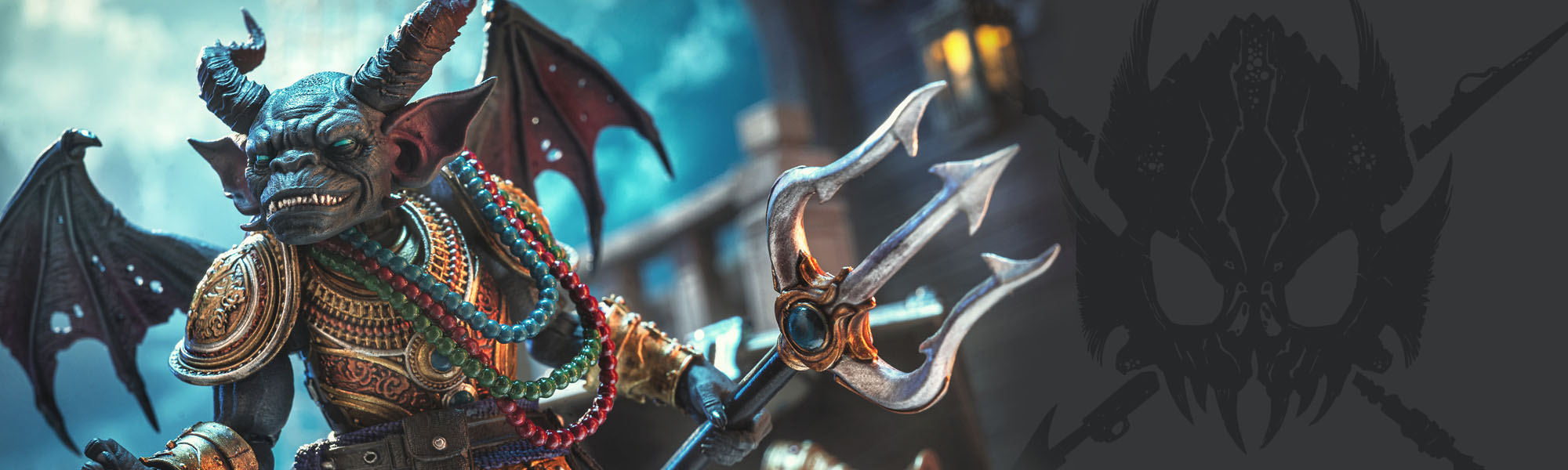 The Imp known as Dzinjar is as devious a character as you will ever meet. Employed by the Seafarers League and sailing aboard the Undertow, Dzinjar uses his small size and innate magical abilities to work as a spy. As General Delphina and the Fisher’s Guild prepare to sail from Eaglesport, Dzinjar hides in the shadows and gathers information on their voyage. Flying back to his own vessel, which is anchored outside of the Dead Lands where the Undertow can discreetly watch the comings and goings of ships upon which they could prey, the Imp reports what he has learned to Captain Ironskul. Together they devise a plan to ambush the Fishers Guild vessel as soon as it has left the safety of New Mythoss’ waters.