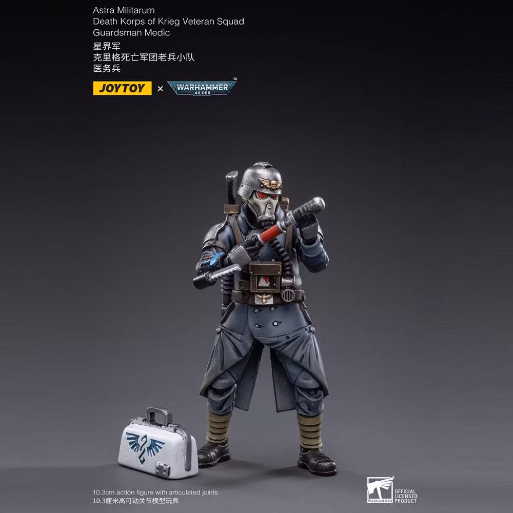 Joy Toy brings the Death Korps of Krieg Veteran Squad from Warhammer 40k to life with this new series of 1/18 scale figures. Each figure includes interchangeable hands and weapon accessories and stands between 4" and 6" tall.