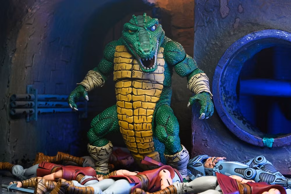 Introducing one of the largest figures in NECA's Teenage Mutant Ninja Turtles Mirage Comics collection! With amazing, sculpted details and deco, this deluxe Leatherhead action figure is sure to be a standout addition to your TMNT collection. Standing in 7-inch scale, Leatherhead features two different heads with hinged jaws, an articulated tail, and interchangeable hands! Comes in collector-friendly packaging with original artwork by Kevin Eastman.