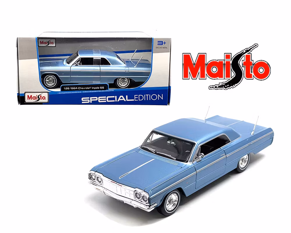 1:24 støpt modell av en Chevrolet Impala fra 1964. Denne svært detaljerte modellen gjenskaper omhyggelig kroppen til den originale bilen og fanger hver elegante kurve, linje og vinkel. Oppmerksomheten på detaljer sprer seg over chassiset og inn i interiøret, med hver brikke og del tatt med. Et elektrostatisk malingbelegg brukes for å gi den den perfekte finishen.