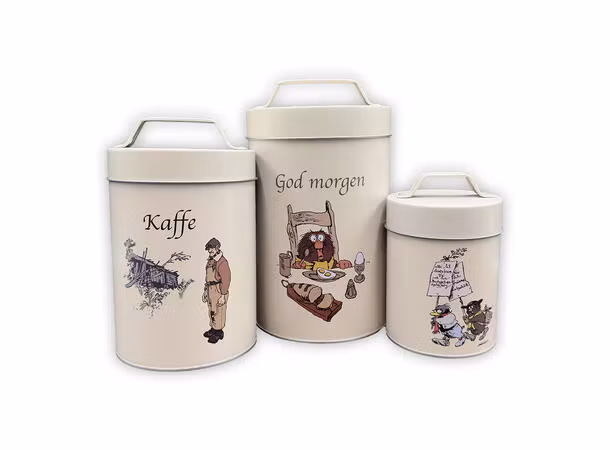 | Flåklypa oppbevaringsbokser i tinn. Boksene har motiv fra Flåklypa - og er lekre sammen eller hver for seg. Håndvask og grundig tørking anbefales. |