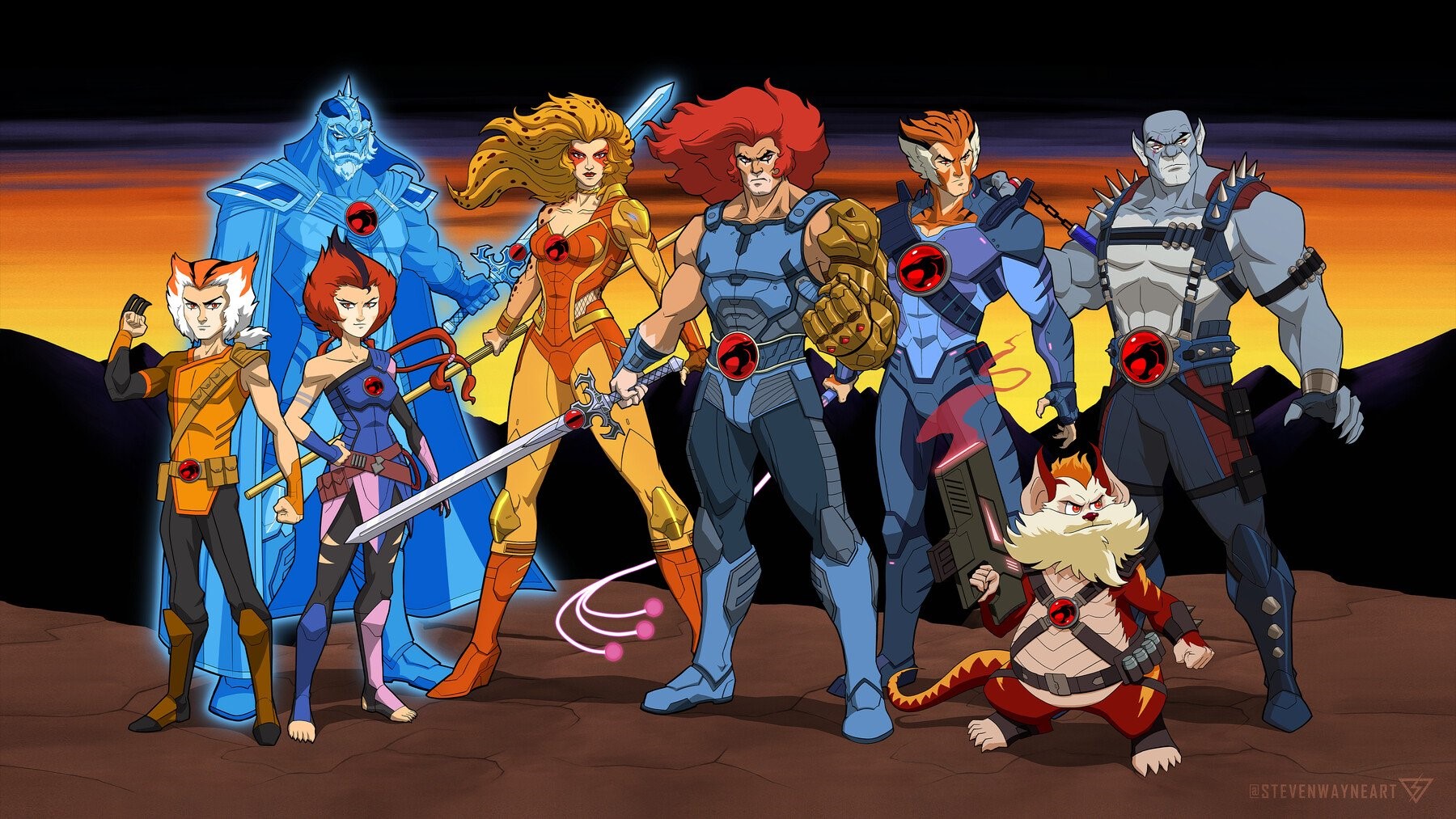 Med seg har Lion-O sine lojale ThunderCat-kamerater: den atletiske og smidige Panthro, den strategiske og medisinske ekspert Cheetara, de eldre og visdomsfulle Tygra og Jaga (sistnevnte som en åndelig veileder), og de rampete barna WilyKit og WilyKat. Sammen utgjør de en sammensveiset familie som må tilpasse seg sin nye verden og beskytte dens innbyggere.